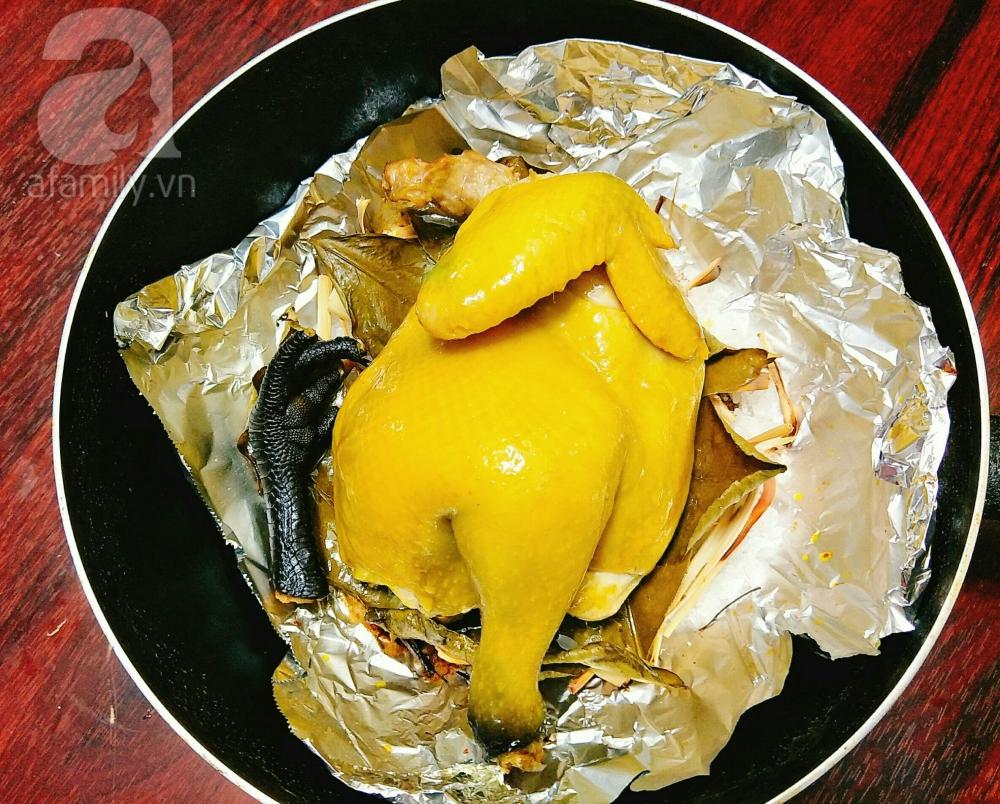 Bật bếp lửa to cho chảo nóng thì hạ lửa nhỏ vừa và hấp khoảng 25-30 phút tùy theo gà to hay nhỏ mà thời gian hấp sẽ thay đổi một chút nhé.