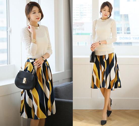 Trẻ trung hơn quý cô sang chảnh có thể diện chân váy họa tiết kết hợp cùng áo thun,