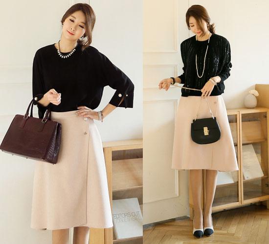 Chân váy đơn màu như màu đen, màu tro, màu be... là những gam màu dễ mặc,