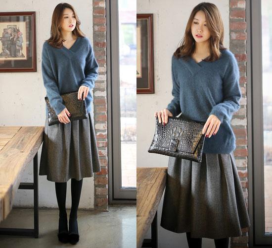 mix cùng áo len gọn gàng sẽ giúp bạn tôn được lợi thế đường cong. Hãy lựa