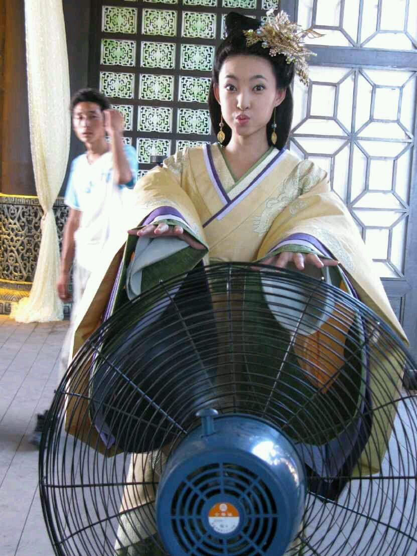 Lâm Tâm Như bơ phờ vì cái nóng sau một cảnh quay.