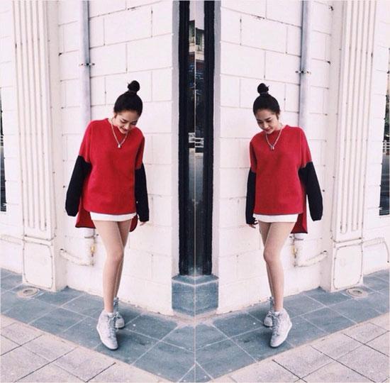Ngọc Trinh xinh tươi và rạng rỡ khoe chân dài với váy ngắn, áo nỉ