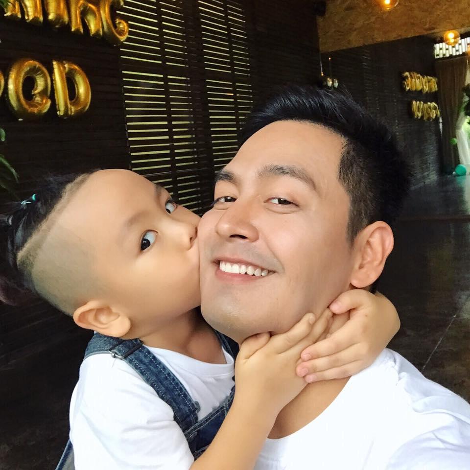 MC Phan Anh được con trai út tinh nghịch thơm má.