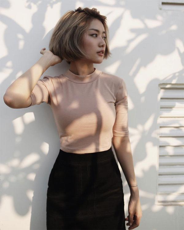 Nếu tự tin về khuôn mặt mình còn gì tuyệt vời hơn là kiểu chụp hình chính diện. Nếu không thể cười thật rạng rỡ thì lúc này biểu cảm cho khuôn mặt là vô cùng quan trọng. Bạn cũng có thể nghiêng nhẹ đầu sang một bên như Nga Wendy để bức hình được mềm mại, thu hút hơn.