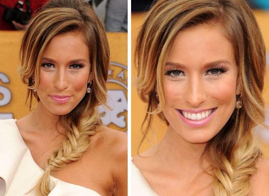 Maria Menounos gây chú ý trên thảm đỏ với phụ kiện ngọc kiêu sa và tóc đuôi cá lãng