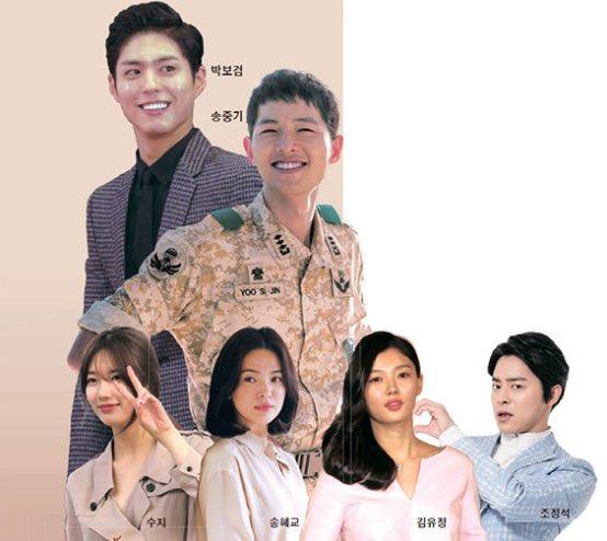 Với cơn sốt Hậu duệ mặt trời, Song Joong Ki đứng thứ 2, nhường vị trí thứ nhất cho đàn em Park Bo Gum