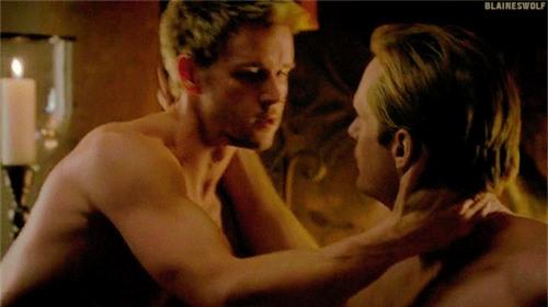 Trong True Blood còn có cảnh Alexander khỏa thân hoàn toàn khi ngồi đọc sách trên tuyết. Bất chợt cơ thể nhân Eric bỗng bùng cháy khiến anh phải bật dậy và khán giả phải "khóc thét" khi thấy bộ phận nhạy cảm của anh lộ rõ trước màn hình.