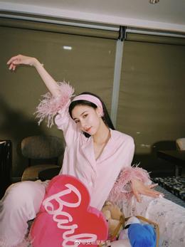 Nữ diễn viên Tống Nghiên Phi khoe vẻ đẹp quyến rũ khi diện đồ ngủ màu hồng ngọt ngào đính lông vũ, đeo bờm tóc tiểu thư.