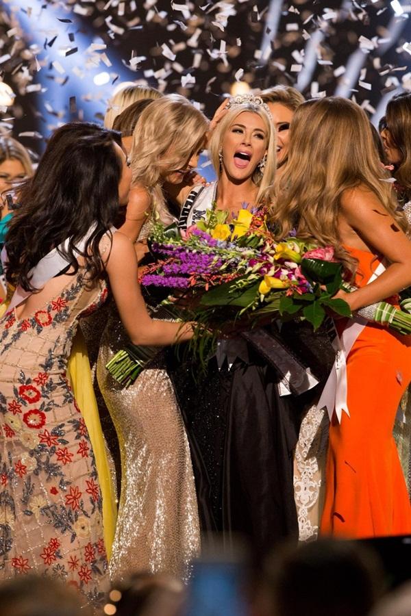 Sarah được Hoa hậu Mỹ 2017 Kára McCullough và đương kim Hoa hậu Hoàn vũ Thế giới Demi-Leigh Nel-Peters trao vương miện.