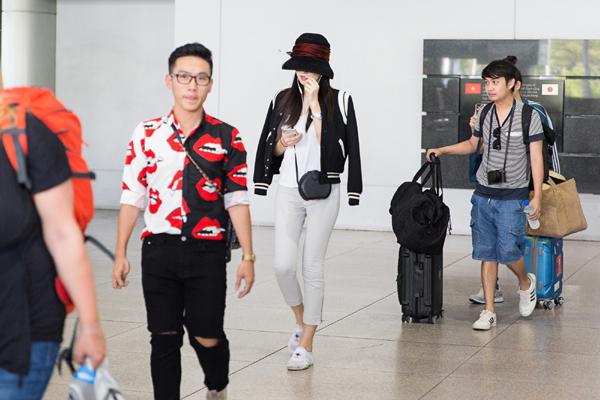 Nong Poy ăn mặc giản dị nhưng vẫn rất "sáng" tại sân bay