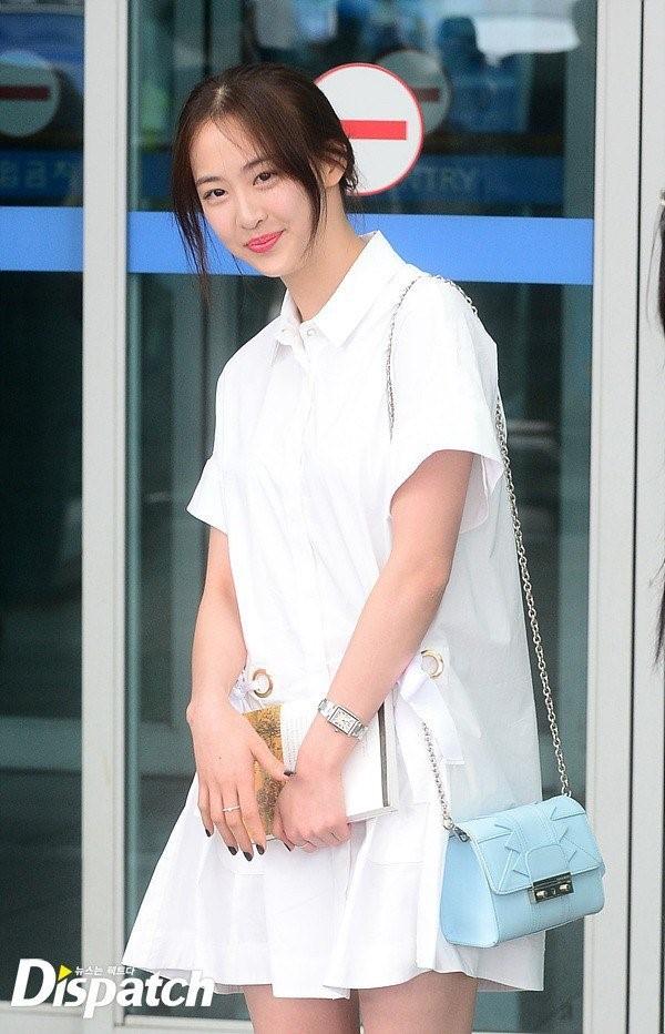 Boram (SISTAR) diện áo váy sơ mi dáng xòe khi ra sân bay.