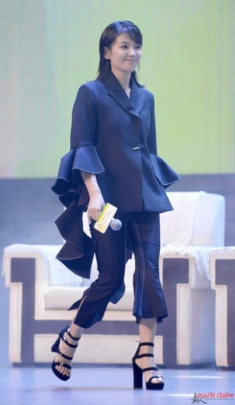 Tương tự, trang phục của Lưu Đào là sự kết hợp giữa phong cách menswear với tay áo chuông rủ.