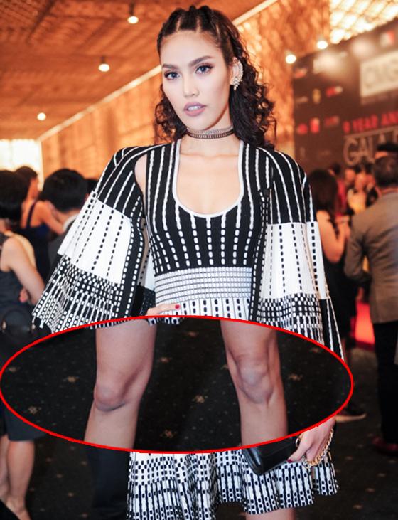 Đôi chân của Ngô Thanh Vân vừa cong, đầu gối lại xương xẩu. Trang phục