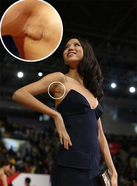 Trong nhiều lần xuất hiện, các ngôi sao khiến công chúng phải bàn tán vì những vết sẹo "khó hiểu" ở những vùng nhạy cảm. Mới đây, Diva Đài Loan Thái Y Lâm tới tham dự một sự kiện âm nhạc, cô lựa chọn bộ váy sexy với đường xẻ ở giữa vòng một. Tuy nhiên, cô bị ống kính phóng viên soi được vết sẹo bên dưới ngực. Một số ý kiến nhận định, có khả năng người đẹp Hoa ngữ đã đi nâng cấp bộ ngực cho to hơn.