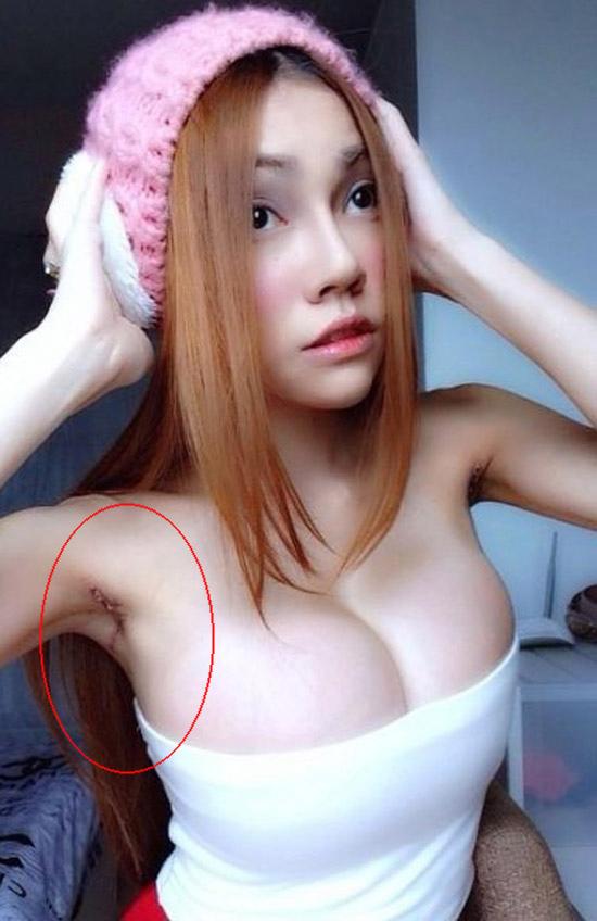 bộ ngực căng tròn cùng vùng nách có sẹo dài. Đây là bằng chứng cho