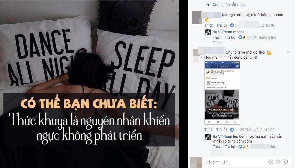 Để cải thiện vòng một, nữ diễn viên sinh năm 1993 đã tìm hiểu và biết lý do khiến "núi đôi" không phát triển chính là vì thức khuya. Hạ Vi tự nhắn nhủ "ngủ sớm từ 9 giờ tối" với hy vọng mình sẽ sớm tăng kích cỡ gò bồng đào.