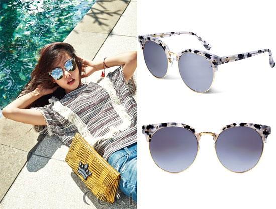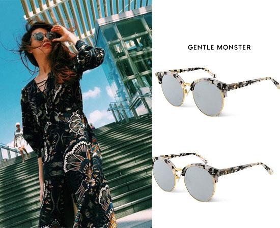 Thêm một mẫu kính đáng được chú ý đó là chiếc kính của nhà mốt Gentle Monster, có họa tiết, kiểu dáng khá giống với style của SPRING STRINGS. Trong lần đi du lịch gần đây, Hà Hồ thể hiện nét đẹp xinh xắn, thời thượng với "hot item" của Gentle Monster. Chiếc kính được bán với giá 265 USD (khoảng gần 6 triệu đồng).