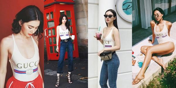 Nếu như 3 cô gái Việt Nam và "ma nữ" xinh đẹp nhất Thái Lan đều có cách phối rất đa dạng với thiết kế của Gucci này thì Sunmi, Hwasa (Mamamoo), Chaeyoung (TWICE), Hailey Baldwin thậm chí còn đụng "chan chát" khi mặc chung với short jeans.