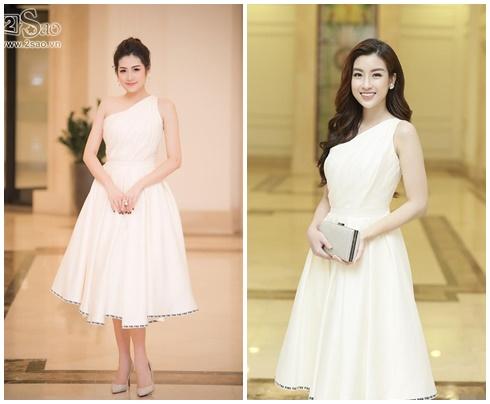 Mới đây, trong đám cưới của Tú Anh, hoa hậu Đỗ Mỹ Linh lại mặc y hệt mẫu váy cô dâu đã diện trước đó.