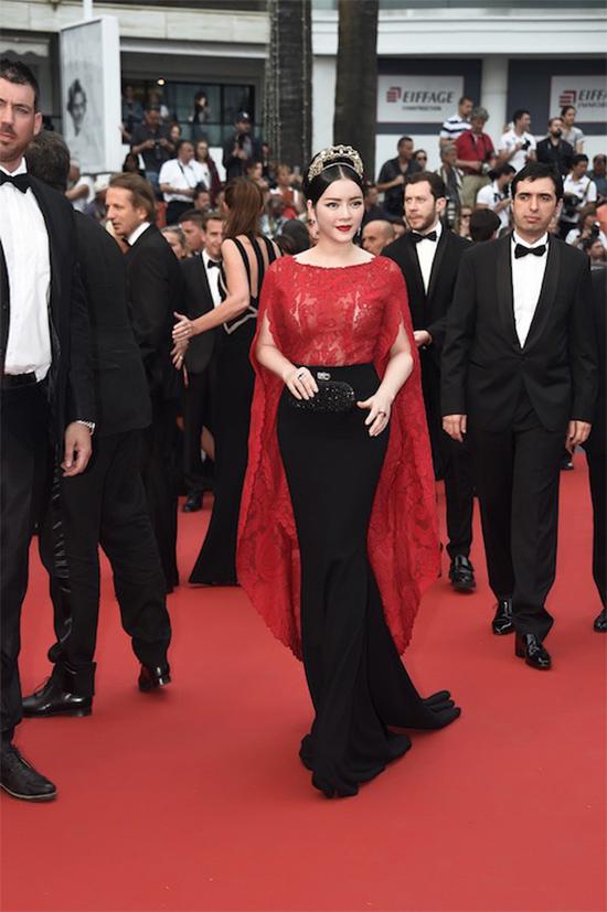 Trong ngày thứ hai tại Cannes, Lý Nhã Kỳ lại xuất hiện với bộ đầm kim sa