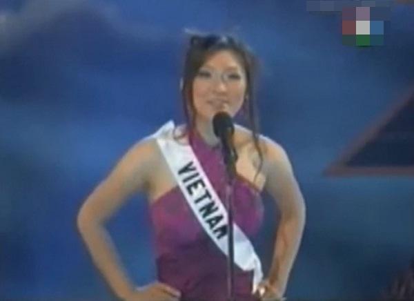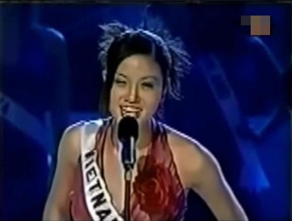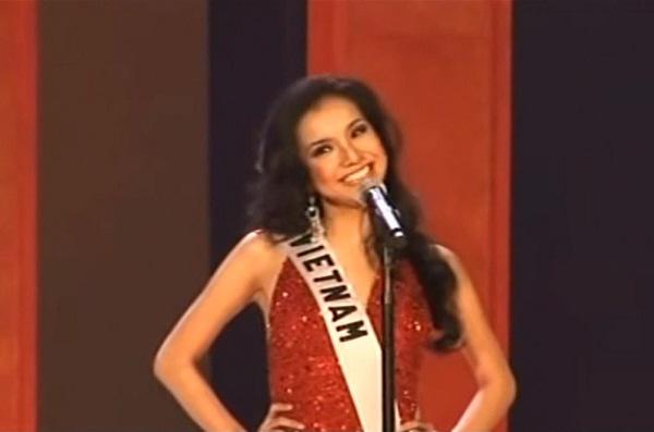 Siêu mẫu Hoàng Khánh Ngọc tự tin giới thiệu họ tên và quốc gia tại Miss Universe 2004.
