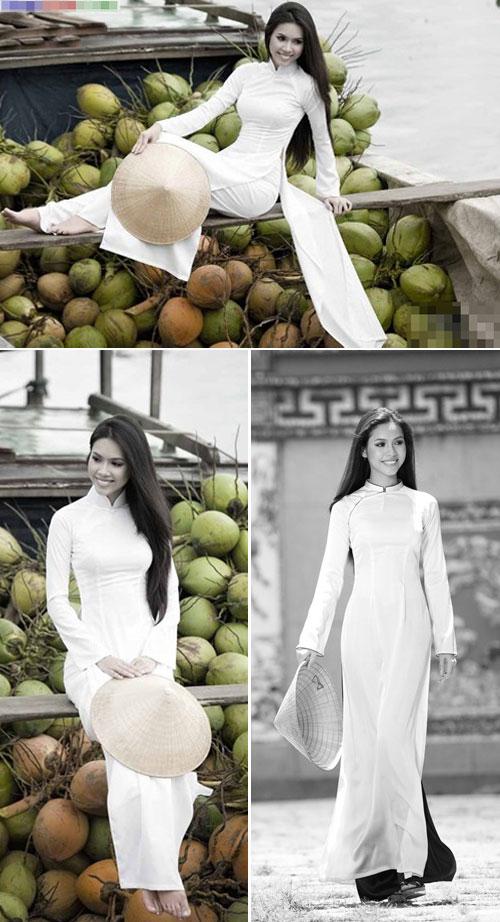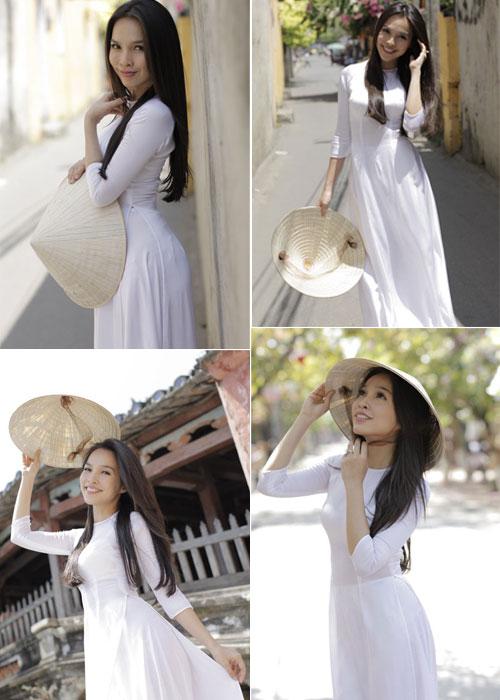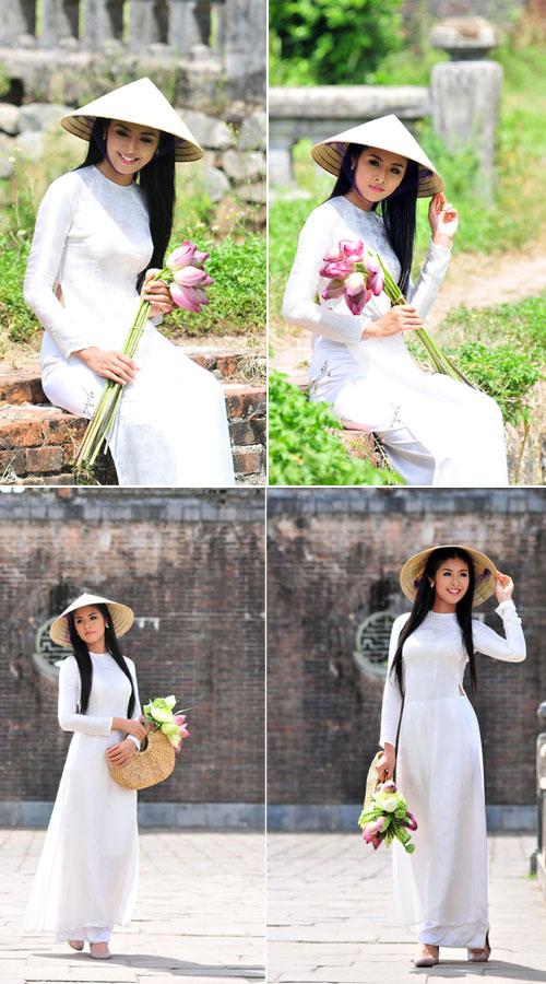Hoa hậu Ngọc Hân khi thì tinh khôi với áo dài trắng khi thì đằm thắm