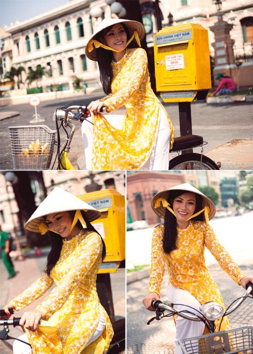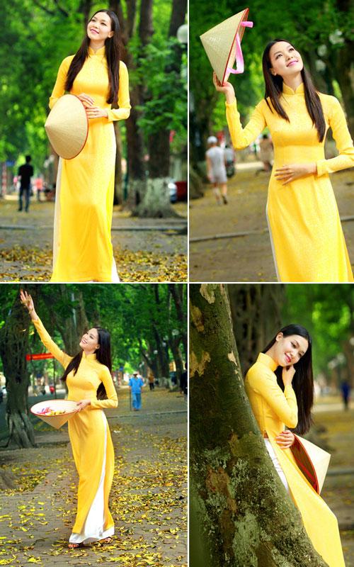 Phương Thanh đẹp toả năng trong tà áo dài vàng.