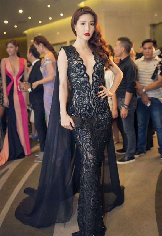 Chiếc váy ren đen "xuyên thấu" này có lẽ là đẹp nhất trong các bộ váy của Diễm My. Kể cả khi có thiết kế khoét sâu phần cổ thì cũng không thể nào tìm ra được điểm phản cảm của bộ trang phục này