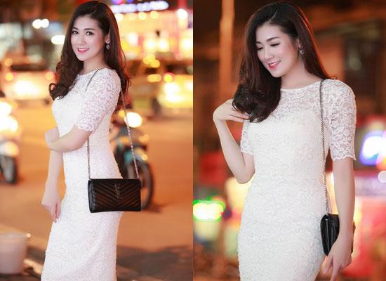 Vũ Ngọc Anh trở nên xinh đẹp khi diện váy với chất liệu ren tinh tế