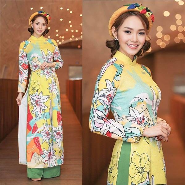 Những nét vẽ đáng yêu giúp tà áo dài truyền thống của Minh Hằng thêm phần thú vị.