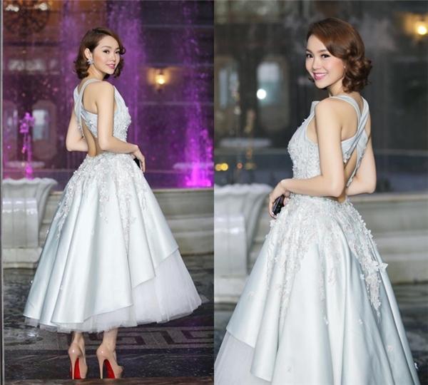 Bộ váy gần đây nhất của nữ ca sĩ với tông màu pastel ngọt ngào cũng được nhấn nhá bằng loạt họa tiết hoa đính kết kì công trên nền chất liệu ren, cườm đá bắt sáng mạnh.