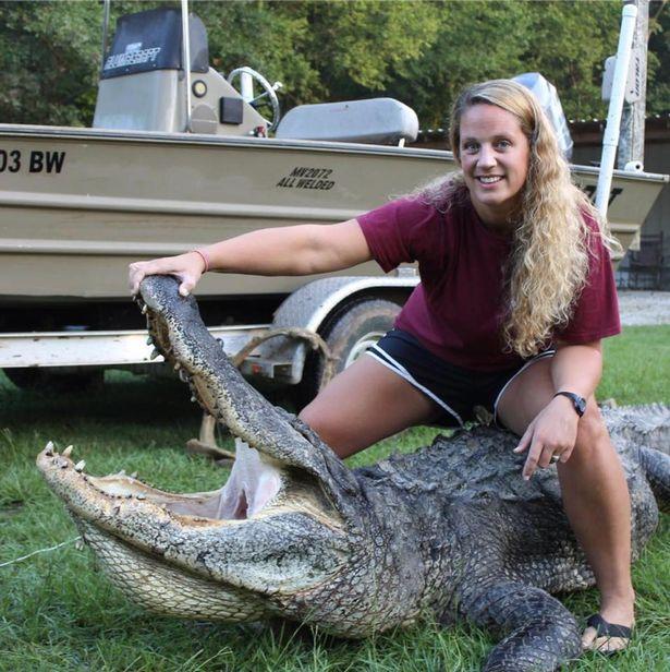 Tiffany chụp ảnh cùng con cá sấu dài nhất từng bị bắt ở bang Mississippi.