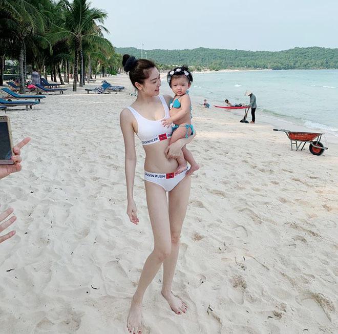 Cơ địa của Ngọc Duyên không giống các mẹ bầu khác, ít bị tăng cân trong quá trình mang bầu và sau sinh. Vì thế, ngay từ lúc sinh con gái được 3 tháng (tháng 7/2018), cô đã hoàn toàn lấy lại được dáng vóc thon gọn.