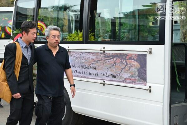 9h00: Ngay từ rất sớm, các nghệ sỹ cùng người thân, bạn bè đã có mặt tại điểm tổ chức lễ tang để tiễn đưa nhạc sỹ Lương Minh về với đất mẹ.