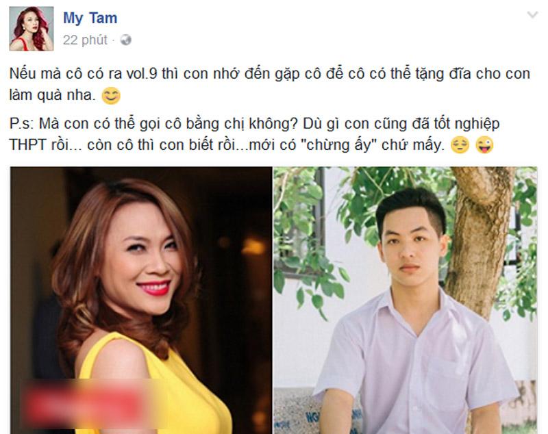Bất ngờ được thần tượng nhắc đến và hứa hẹn sẽ tặng album, Đình Duy vui sướng bình luận cảm ơn. Cùng với đó, rất nhiều fan của Họa mi tóc nâu khuyên chàng trai này nên gọi thần tượng bằng "chị" cho... trẻ trung hơn.