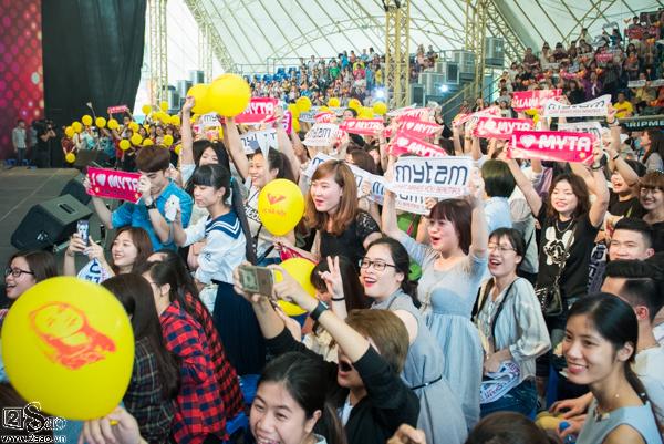 Hàng trăm fan vỗ òa khi thần tượng của mình xuất hiện trên sân khấu.