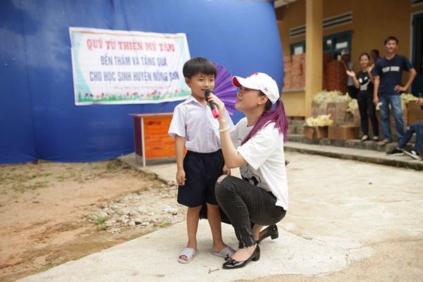 Hôm qua 23/8, Mỹ Tâm đã có chuyến đi từ thiện đến huyện Nông Sơn, tỉnh Quảng Nam. Tại đây, nữ ca sĩ đã cùng với quỹ từ thiện Mỹ Tâm Foundation tổ chức trao quà cho các em học sinh có hoàn cảnh khó khăn cho 2 trường học của ở huyện Nông Sơn.