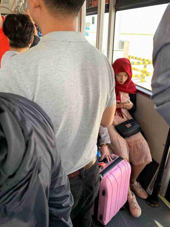 Hình ảnh Hoàng Oanh bị một khán giả nhận ra và chụp lén ngồi trên xe bus của sân bay. Nhìn ảnh này, khán giả lại càng thêm tin tưởng đồn đoán người đẹp đã có tin vui là chính xác.