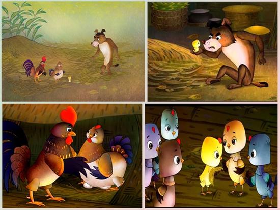 Câu chuyện cảm động kể về "người cha bất đắc dĩ" là chú chó hung dữ, khó tính. Dù lúc nào cũng truy đuổi vợ chồng gà, nhưng khi đối mặt với tiếng gọi "bố! bố! bố ơi! con đói, con đói" của chú gà con thì mắt chú chó ánh lên nét dịu dàng. Cao trào của câu chuyện là khi cặp vợ chồng gà đòi lại được con của mình.