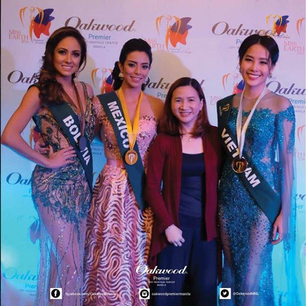 Nam Em chụp ảnh lưu niệm với thành viên Ban tổ chức Miss Earth 2016.