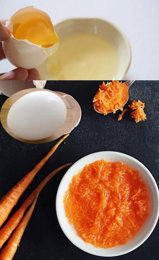 Kết hợp lòng trắng trứng, cà rốt và lô hội vào trong một chiếc bát nhỏ. Đánh cho hỗn hợp này trở nên sủi bọt (đánh trong thời gian khoảng 1 phút). Dùng tay, áp dụng hỗn hợp này lên vùng quanh mắt. Để khoảng 15 cho đến 30 phút cho đến lúc mặt nạ khô lại. Sau đó rửa mặt sạch bằng nước lạnh.