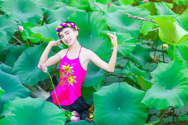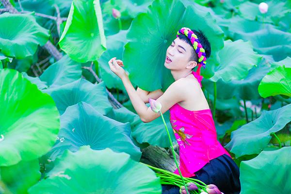 Không phải là người mẫu chuyên nghiệp cũng chẳng phải model thường xuyên đứng trước ống kính, lần đầu tiên trong cuộc đời được chụp hình bằng máy cơ, nam sinh Nguyễn Ngọc Phúc đã chọn ngay cocept táo bạo, hóa thân thành thiếu nữ áo yếm bên đầm sen nơi làng quê Nghệ An.