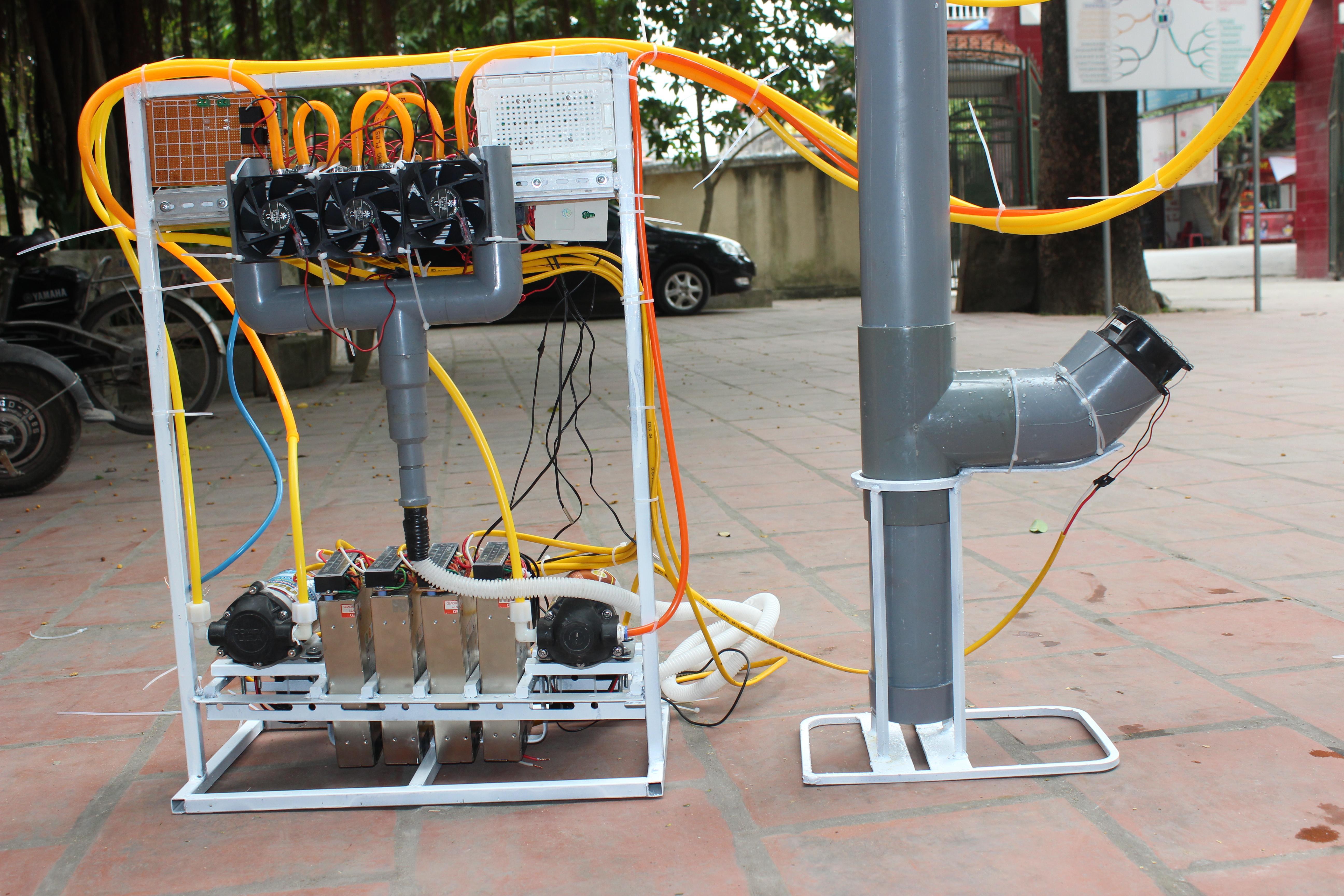 Chỉ mới là học sinh lớp 10 nhưng Tạ Hoàng bảo việt thực sự cho chúng tôi bất ngờ về khả năng và sự hiểu biết của mình về lĩnh vực kĩ thuật cơ khí, điện lạnh. Sản phẩm “hệ thống làm mát bằng tháp bay hơi” chính là thành quả mà cậu học sinh này đã nghiên cứu và sáng chế ra. Việt cho biết “đây là sự kết hợp của hai công nghệ là làm mát bằng tháp bay hơi và vật liệu bán dẫn”.