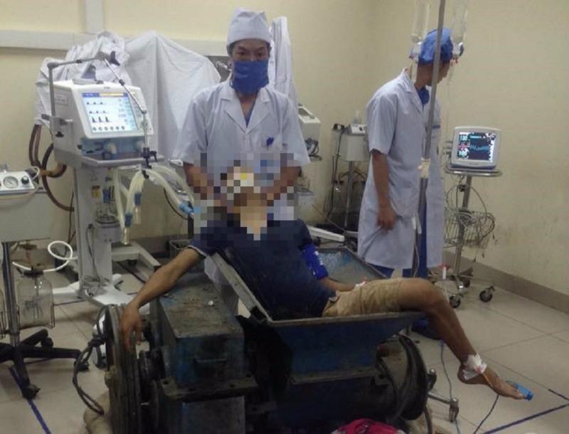 Nạn nhân là nam thanh niên trú xã Lãng Sơn, làm thuê cho một xưởng sản xuất gạch tuynen tư nhân. Khi nghiền đất, đóng gạch, một chân của anh đã bị cuốn vào máy. Không thể giải cứu, chủ xưởng gạch phải điều động người và phương tiện tháo rời máy, khênh cả nạn nhân lẫn máy đưa về Bệnh viện đa khoa tỉnh Bắc Giang cấp cứu.