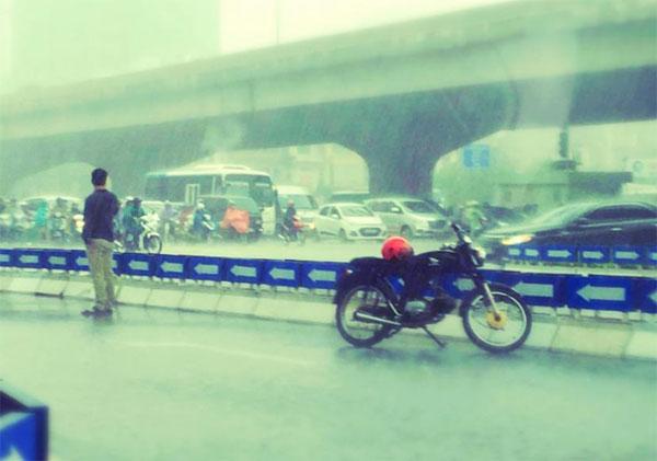 Hình ảnh nam thanh niên một mình đứng dưới trời mưa to đang được dân mạng chia sẻ nhiều. Được biết hình ảnh này ghi lại ở đường Khuất Duy Tiến - Quận Thanh Xuân. Không hiểu ly do vì sao mà giữa trời mưa to chàng trai này lại đứng dưới đường với những biểu cảm khá u buồn khiến nhiều người không thể không ngoái đầu nhìn lại.