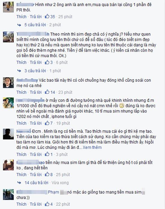 Ngay sau khi hình ảnh này đăng tải trên mạng xã hội đã nhanh chóng nhận hàng nghìn lượt like và nhiều bình luận của các bạn trẻ. Một số bạn tỏ ra ngưỡng mộ độ giàu có, chịu chơi của nam thanh niên. Một số bạn hài hước nhận đây là người anh đã thất lạc lâu nay của mình. Bên cạnh đó, nhiều bạn thì cho rằng đây chỉ là chiêu trò khoe mẽ, làm lố hoặc PR mà thôi: "Cái kiểu mang tiền mua sim xong check-in các kiểu, đại gia thật sự có phô trương thế không?"; "Lại giống quả bóng chứng khoán thôi. Lăng xê sim lên giá 10 tỷ. Ít lâu sau giao bán 7 tỷ vẫn có lãi..."
