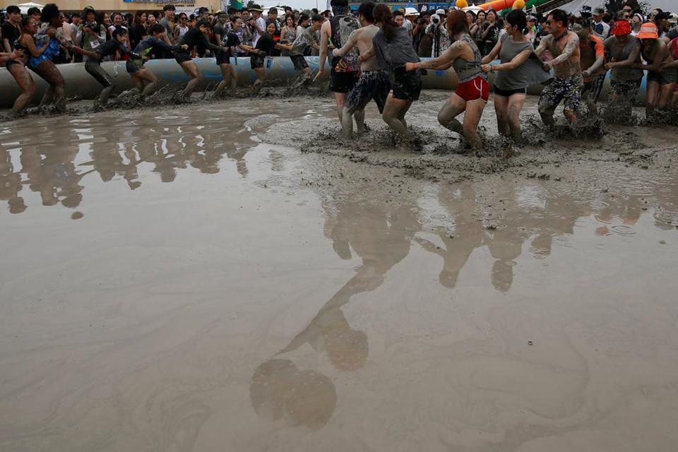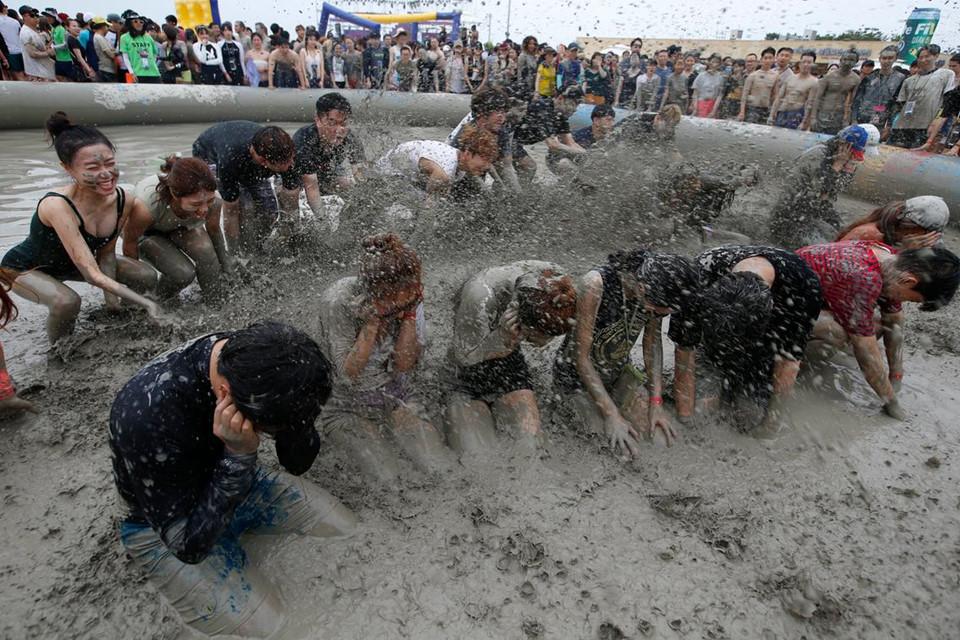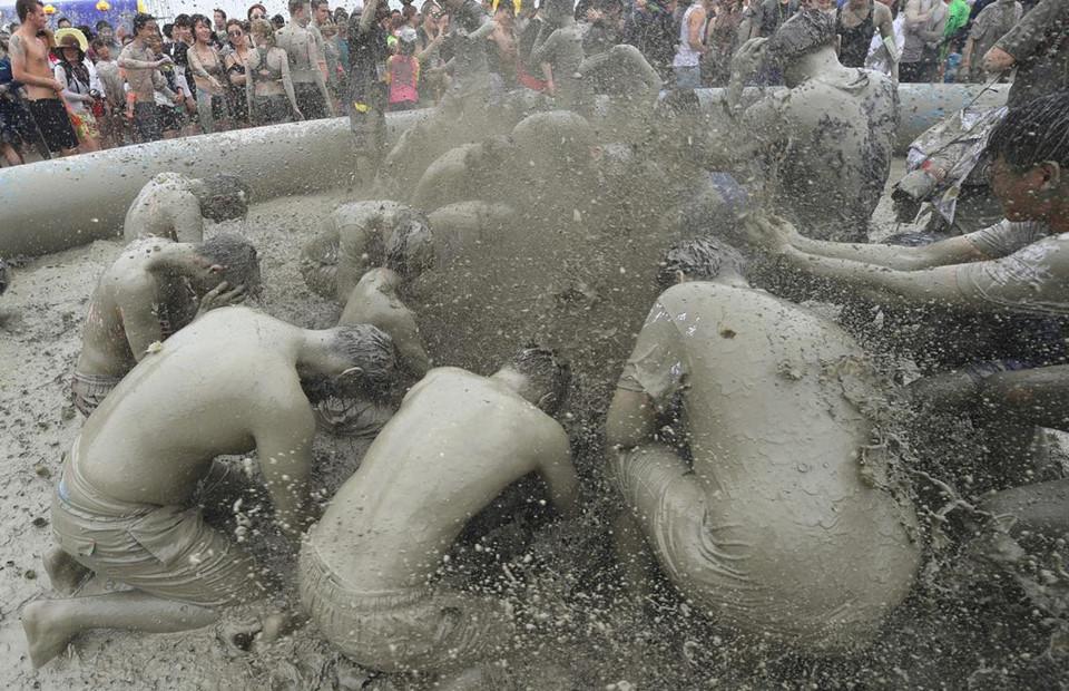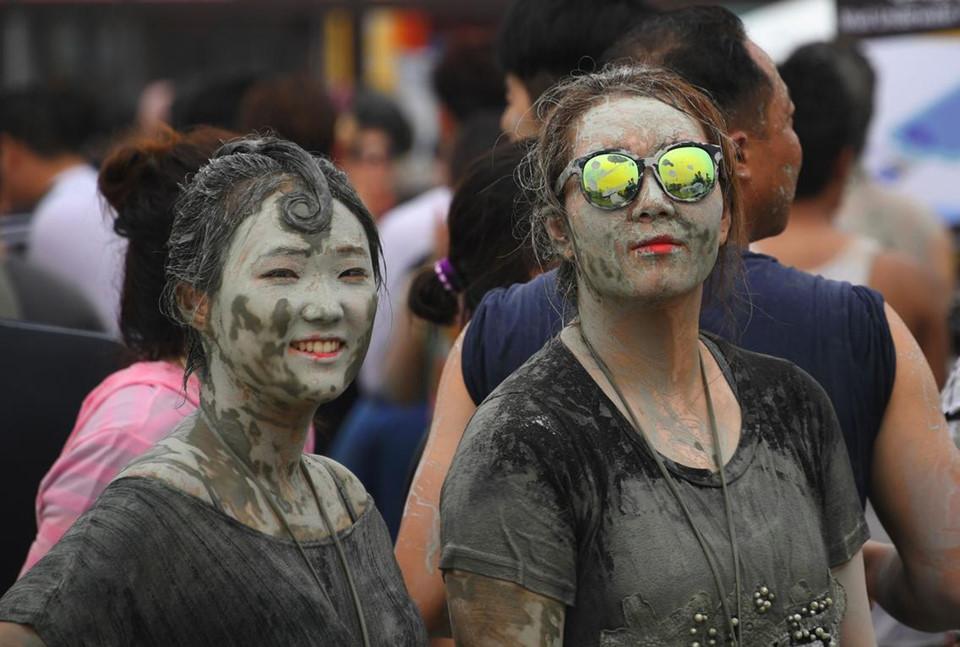 Những ngày cuối tháng 7, người dân Hàn Quốc và du khách đổ về thành phố biển Boryeong thuộc tỉnh Chungcheong Nam để tham gia lễ hội bùn diễn ra trong 9 ngày. Ảnh: AFP