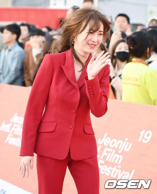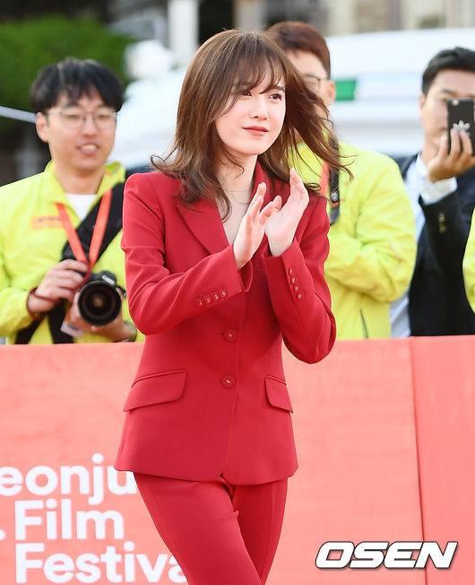 Chiều tối 3/5, Goo Hye Sun có mặt tại thảm đỏ Liên hoan phim Quốc tế Jeonju lần thứ 19. Ngay khi xuất hiện, nữ diễn viên đã thu hút hết mọi sự chú ý với nhan sắc xinh đẹp trong bộ trang phục đỏ nổi bật.