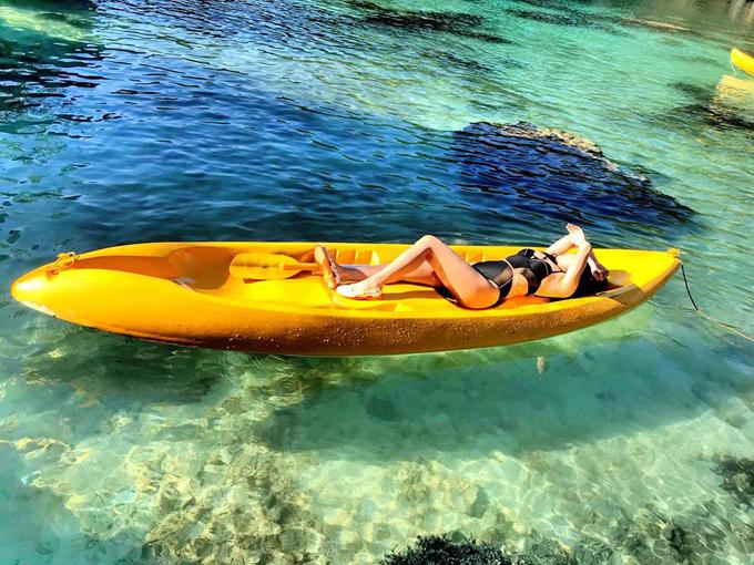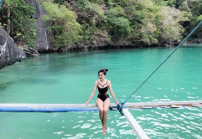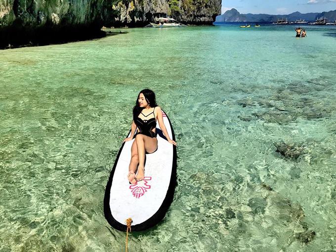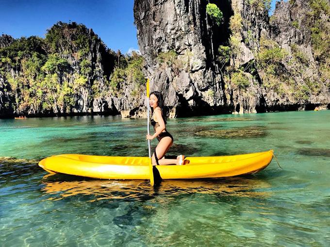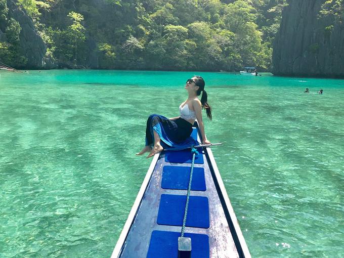 Huyền Thu chia sẻ: "El Nido thuộc tỉnh Palawan, Philippines. Đây là một nơi rất nên đi với những bạn nào thích bơi lội, thích vận động. Cảnh báo trước là tour này khá mệt vì di chuyển vất vả, nên bạn nào thích du lịch kiểu bánh bèo, nghỉ dưỡng thì không thật sự phù hợp đâu".