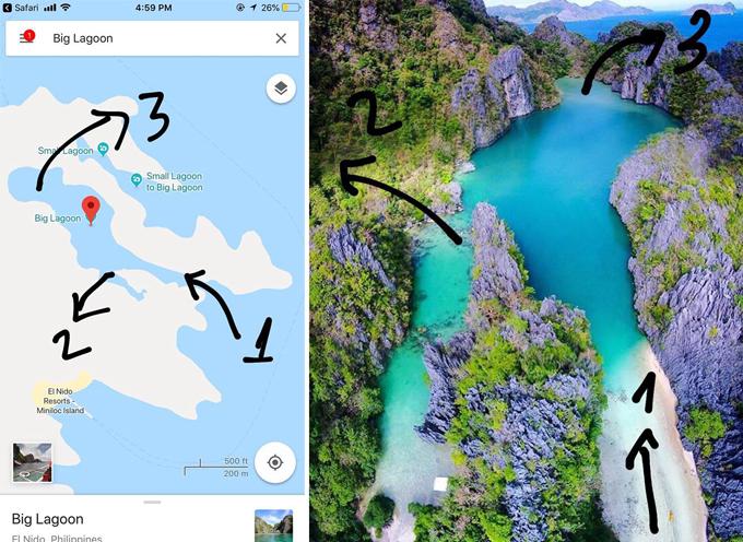 Big Lagoon trên bản đồ và ngoài đời thực cho Huyền Thu so sánh, đối chiếu.